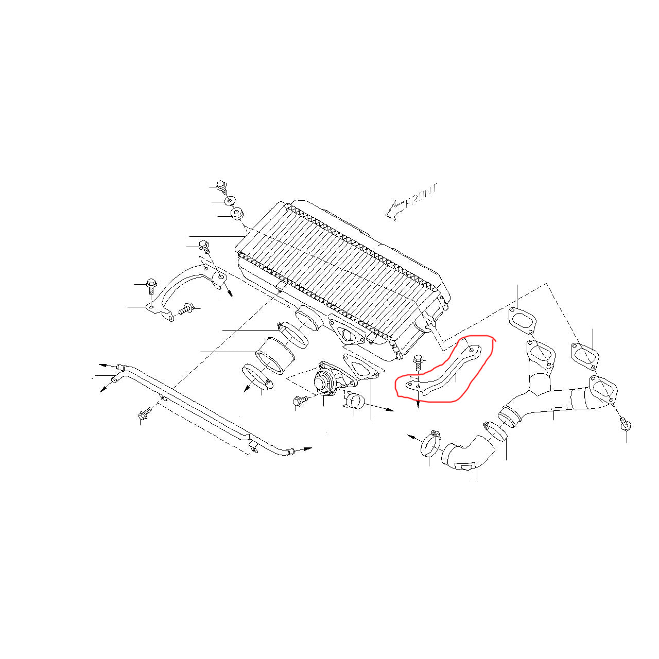 This OEM Subaru intercooler bracket holds up the left side (US driver side) of the intercooler on the 2008-2021 WRX STI.